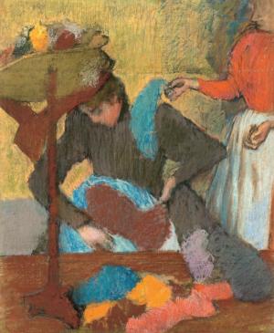 Danseuse assise : penchée en avant, elle se masse le pied gauche (détail)