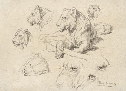 Tête de cerf bizarre sur un mur de pierre, signé et daté en bas à droite