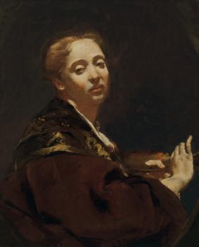 Portrait of a Young Woman in Profile with a Mask in her Right Hand