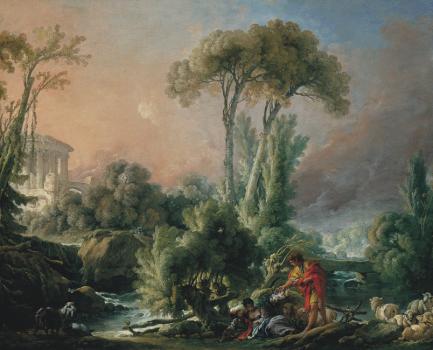 River Landscape with an Antique Temple