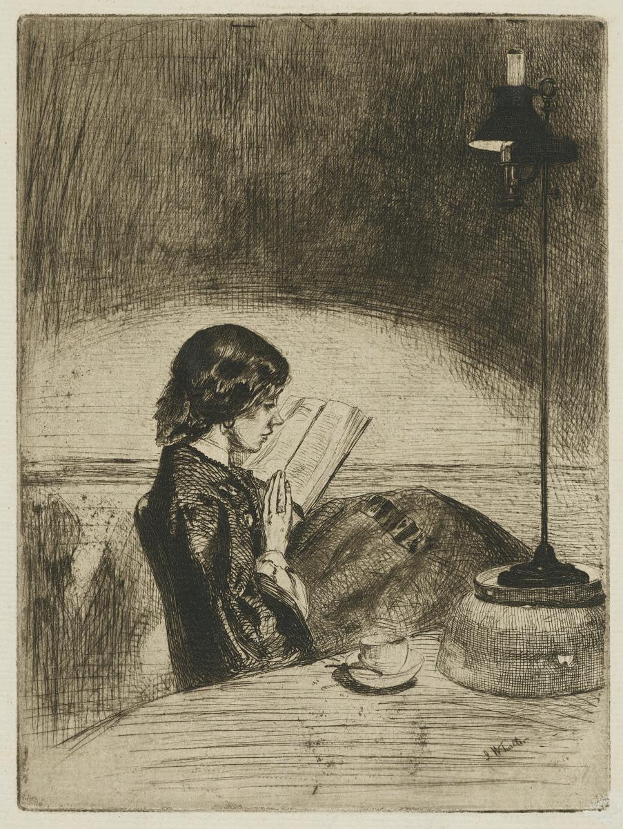 Leyendo a la luz de la lámpara